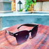 These rimless women's sunglasses are as fun as they are functional. Transparent rimless frames give a stylish, fashionable look while gradient lenses block harsh overhead sunlight without over-darkening objects directly ahead and below your line of sight.