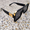 These celebrity millionaire style designer sunglasses are made for the red carpet and looking extravagant. Stand out from the crowd with these fashionable and bold black and gold celebrity sunglasses.